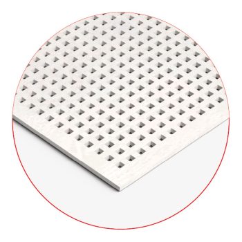 Silenpyl son placas de yeso laminado 100% natural con perforaciones geométricas para conseguir una mejora acústica.